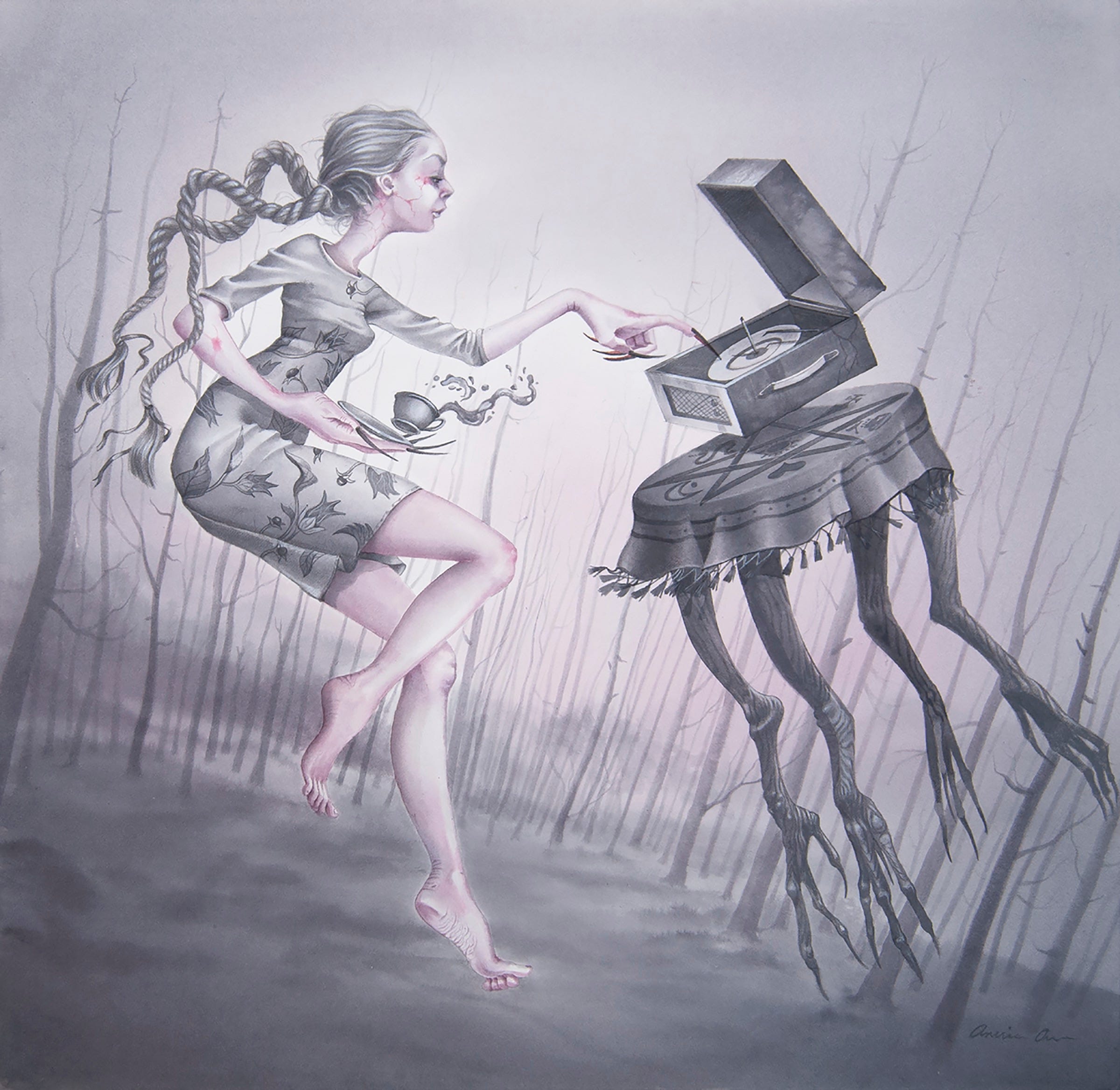 But as far as influence, before it was the look and feel of horror movies and Scary Stories to Tell in the Dark. That series was a big influence. I’ve definitely moved away from that, but I still prefer to work in monochrome. I love really vibrant colors in other people’s work, but I just don’t want to work that way.