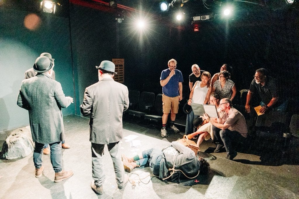 The premise is your friend invited you to a play, and you’ve told them that you’re going to be there and you’re going to sit through the entire show, and you’ve promised them you’re going to stay. And you get there and you are told that the stage manager has quit, and lawyers are going to come sue everyone in the theater if you can’t call the cues and get through the show before the lawyers arrive, and you have to see the whole show as fast as possible. We call it a puzzle play, because unlike a traditional escape room, the clues and puzzles and interactivities are embedded in the performance. So you don’t rip apart seats to find things. You have to listen and watch the show in order to get through it. It’s not a needle in a haystack. You have to actually pay attention to the actors, which is great.