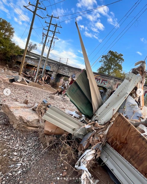 There is a much broader sense of normalcy now. People have their day-to-day lives back. Jobs are back and gas stations are functional, and the hospitals are functional. Unfortunately, with a natural disaster, you don’t know where it’s going to take out. The River Arts District was our vein of creativity. The River Arts District and Marshall, which is a beautiful, creative little town, both sat on the river, and they both were utterly destroyed. And so the hotels are doing okay, but Beer City, which is my least favorite part of the town, is how they’ve directed tourism. I think it’s been a real disservice to the creative arts and the actual culture of southern Appalachia. Unfortunately, those things are doing okay, and the things that were the most impacted were rural, small towns and communities and this whole vein of creative arts. The River Arts District has been absolutely gutted. There’s galleries and pottery studios and small mom-and-pop restaurants and businesses. Those are the things that are either gone or struggling so hard they’re not sure if they will be able to make it at all. The money points towards this big business and the local community that was really deeply impacted is struggling a lot.