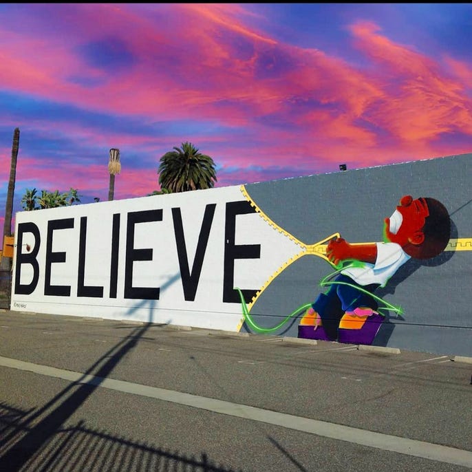 It has definitely made a huge impact. It has created a sense of caring for the community and self-awareness because of these messages. You know, it’s not just art. When you pass by a street that says Believe or Hope or Forgiveness or Keep Smiling, it makes you think about something within yourself. The art is there, but it’s more about the message. It definitely reflects in a positive way to the community.