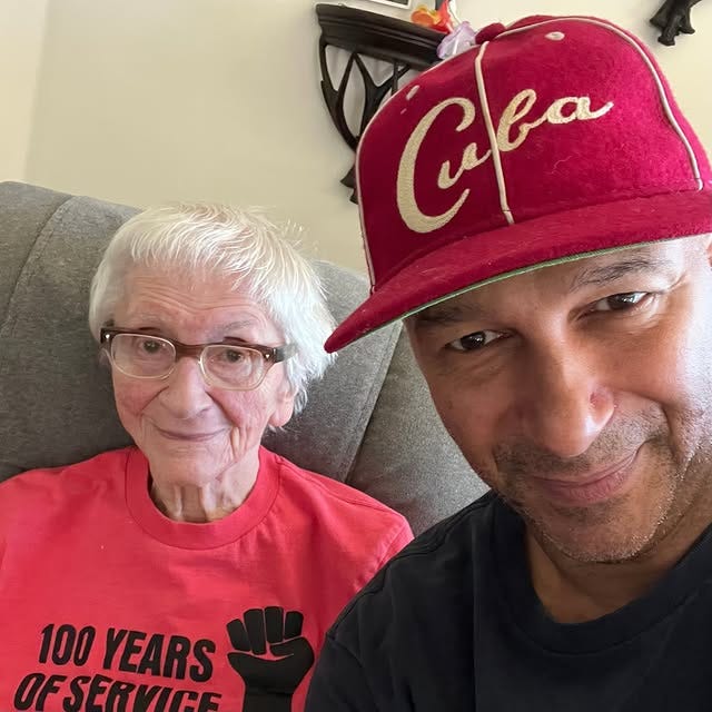 Sure. My mom who, God willing, turns 98 years old on October the first, grew up in a small coal mining town in Illinois, and she did something that no one had ever done from that town: she left, and as a single woman traveled the world for over 20 years on steamers. She had teaching aspirations, so she taught the children of officers at U.S. military bases in places like Japan and Spain and post-World War II in Germany. Eventually she was teaching in the Aberdare Mountains in Kenya, and that’s where she met my dad. And then after decades of global traveling and adventure, she moved back to small-town Illinois, where she was a public high school teacher for the next 25 years or so, where she raised me and was involved in a variety of progressive radical and revolutionary causes. She’s of Irish-Italian descent, and I was literally the only African American person in the town that we lived in. And so in contending with racism and things like that, she was always a ferocious mother bear and always standing up for the underdog, and to this day remains the most popular and radical member of the Morello family.